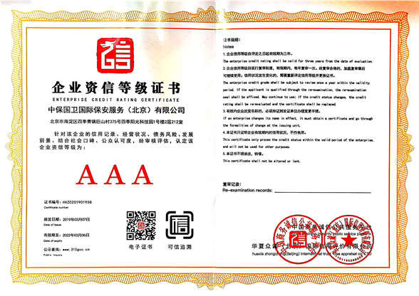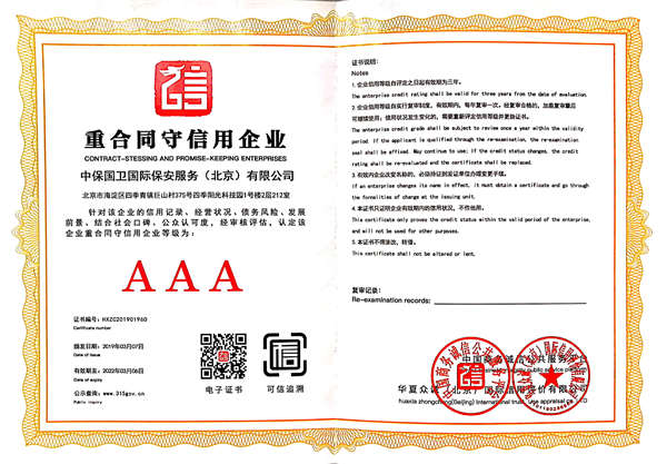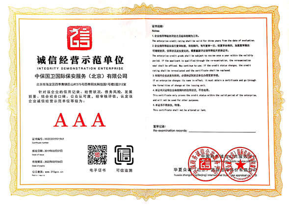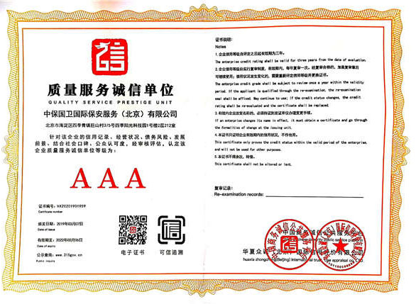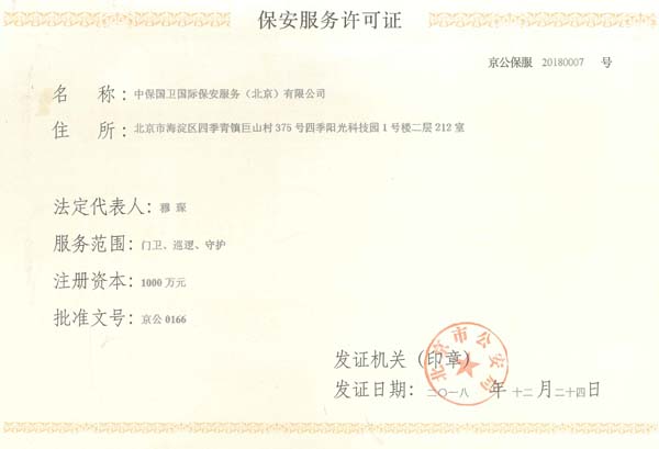 中保國衛(wèi)國際保安服務(北京)有限公司,屬中保國衛(wèi)集團旗下子公司。能全方位的為大型客戶提供優(yōu)質的安保、押運服務,是集人防和技防于一體的新型正規(guī)化綜合安保押運服務企業,提供人防、物防、技防、聯網報*、非武裝押運等安防相關的一站式服務。 公司在國內多省設立有分公司及分支機構,著重提升安全押運、智能技術押運及安全技術防范相關的服務,業務范圍覆蓋全國一、二線城市、港澳地區以及海外地區。安保方面主要為政府機構、金融機構、企事業單位、醫(yī)療衛(wèi)生、高等院校、工業園區、大型商場、高檔住宅、智能商務樓、大型活動提供門衛(wèi)、守護、巡邏、押運(非武裝)、安全檢查、保安特勤、私人護衛(wèi)、消防中控、安全技術防范、遠洋護航等全方位服務,同時面向國際市場,為中資企業在“一帶一路”沿線國家投資提供境外安保服務。 >> 更多內容 |